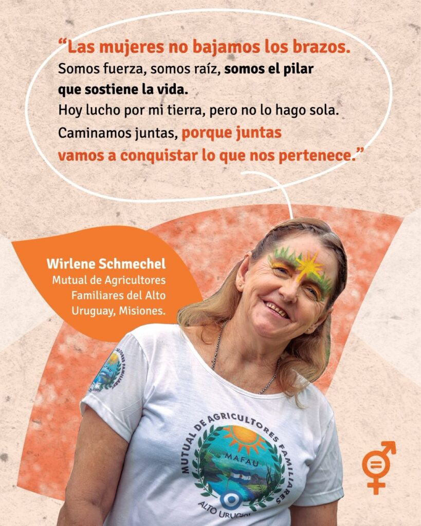 “Juntas vamos a conquistar lo que nos pertenece”, afirma Wirlene Schmechel, referente de la Mutual de Agricultores Familiares del Alto Uruguay en Misiones.