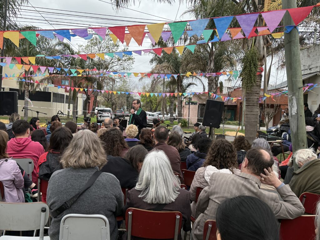 “Es la concreción de una manera de ser iglesia presente en la comunidad. Hacerlo acá, en la calle, muestra una iglesia que se hace visible, que da testimonio público de lo que cree”, destacó el pastor presidente de la Iglesia Evangélica del Río de la Plata, Leonardo Schindler.
