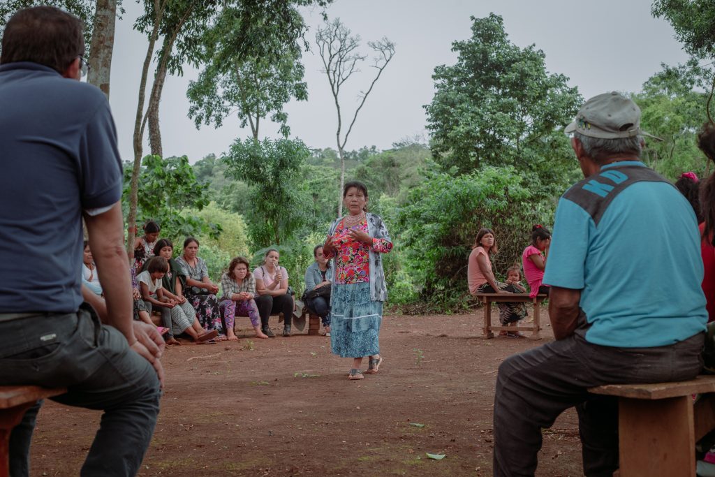 Vertreterinnen von mehr als 20 Mbya-Guaraní-Gemeinschaften in Argentinien und Paraguay trafen sich in der Gemeinde Ruiz de Montoya. Die internationalen