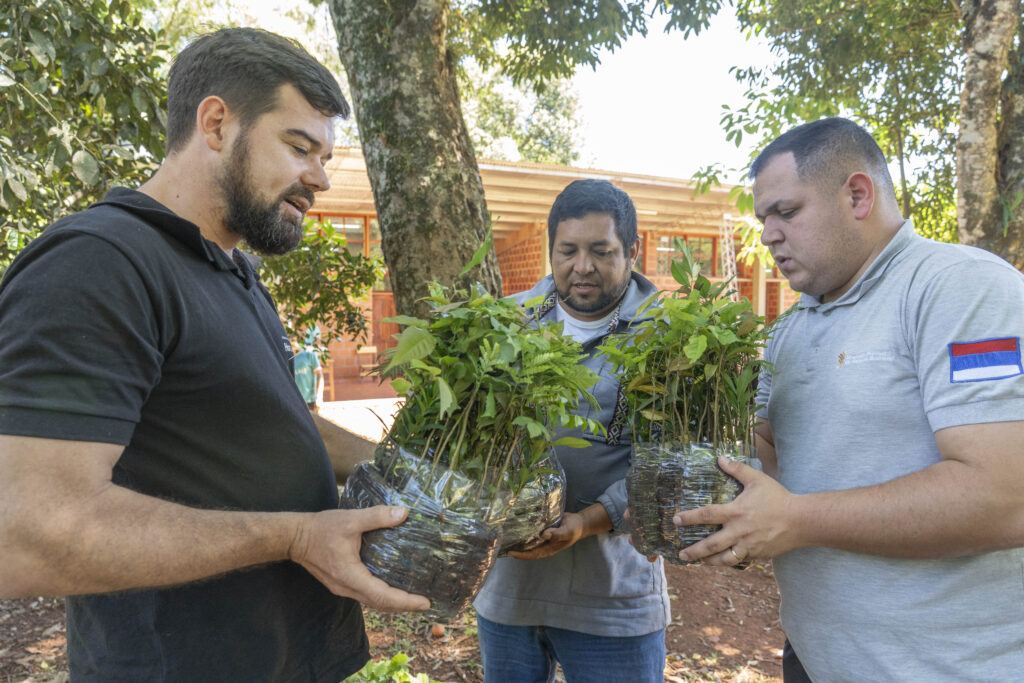 180 familias indígenas de la Comunidad Mbyá Guaraní Perutí recibieron 2.000 plantines. Las especies nativas se plantarán en los yerbales de las familias productoras de la cooperativa Kaá Porá Perutí, para promover la producción sustentable, la soberanía alimentaria y la recuperación de especies clave para la fauna local.