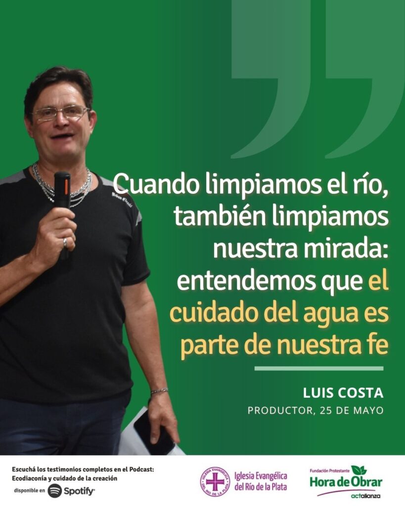 El productor Luis Costa y el pastor Emiliano Torres compartieron la experiencia de la Congregación Evangélica del Alto Uruguay, que desde hace siete años organiza jornadas de limpieza, cuidado de vertientes y reforestación en la costa del río. “Hoy la gente puede disfrutar de un río limpio, con árboles que dan sombra a las familias”, celebró Costa. “Como iglesia de Cristo, el cuidado de la creación es parte de nuestra misión.”