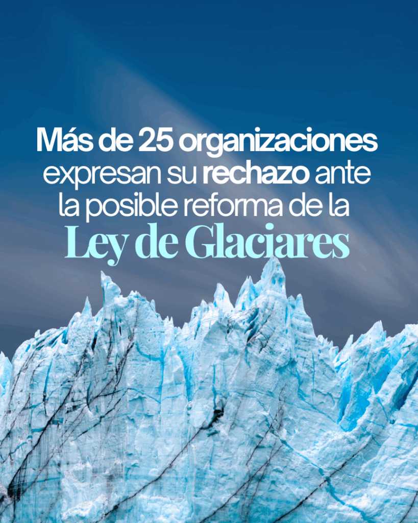 Más de 25 organizaciones de todo el país expresaron su profunda preocupación ante la posible reforma de la Ley N.º 26.639, “Régimen de Presupuestos Mínimos para la Preservación de Glaciares y del Ambiente Periglacial”. En un documento conjunto (link) publicado hoy, las organizaciones de la sociedad civil coinciden en la necesidad de reafirmar los fundamentos técnicos, científicos y jurídicos que dieron origen a la Ley de Glaciares y rechazan cualquier modificación que reduzca los niveles de protección ya establecidos.