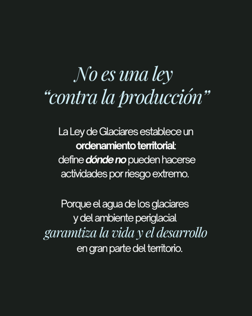 El texto enfatiza que la Ley de Glaciares no bloquea el desarrollo, sino que lo ordena, garantizando que ninguna actividad avance sobre zonas donde el daño sería permanente y donde el agua —ya de por sí escasa y cada vez más vulnerable— cumple funciones ambientales y sociales irremplazables.